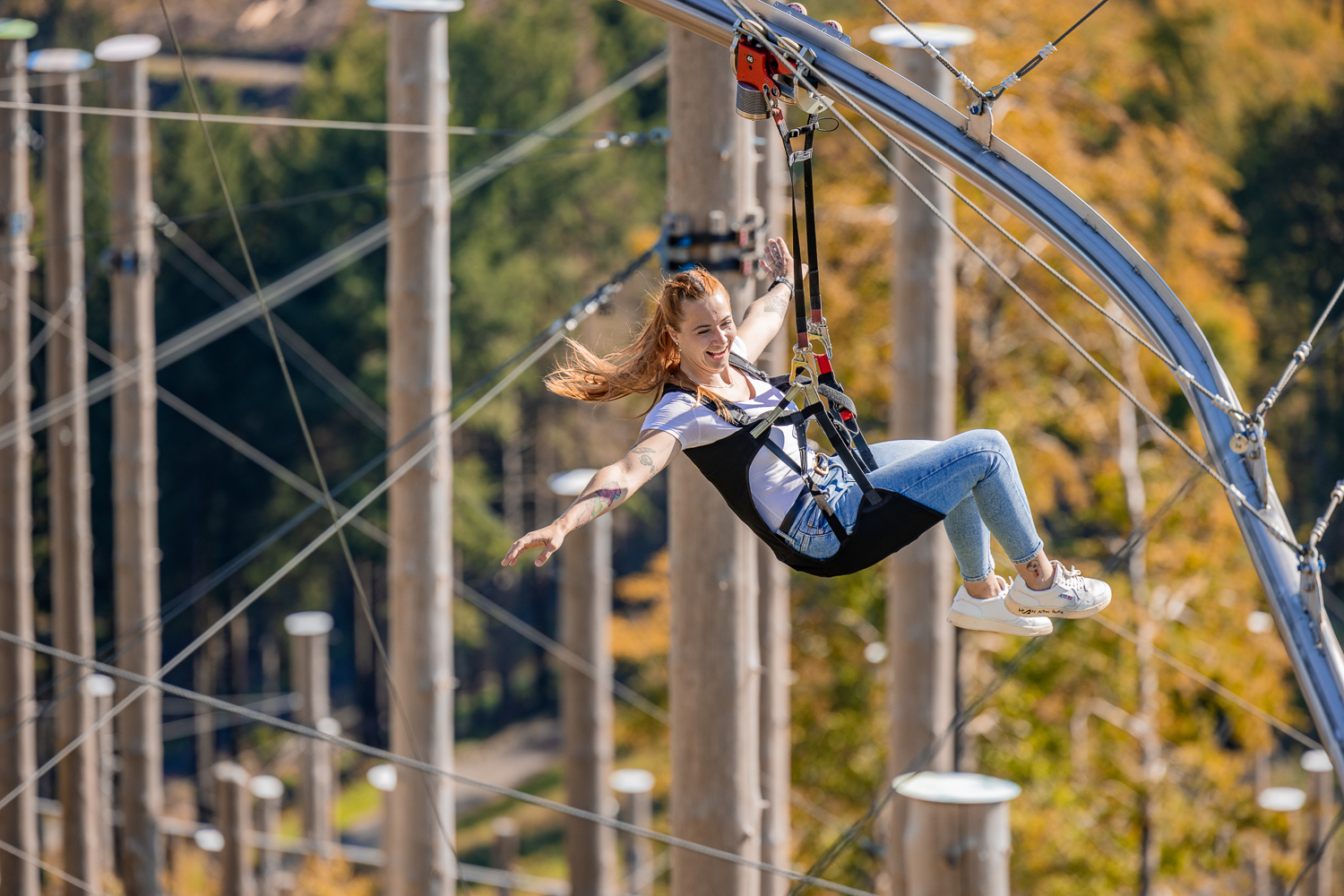 Die Fly-Line bietet dir ein ganz besonderes Erlebnis: Du gleitest sanft an einem Schienensystem durch den Wald und fühlst dich dabei fast wie im Flug. Im Vergleich zu klassischen Seilrutschen steht hier nicht die Geschwindigkeit, sondern das Naturerlebnis im Vordergrund. Dadurch ist die Fly-Line auch ideal für Familien und alle, die es etwas entspannter angehen möchten. Die Preise liegen bei 15 Euro für Kinder und 18,50 Euro für Erwachsene.