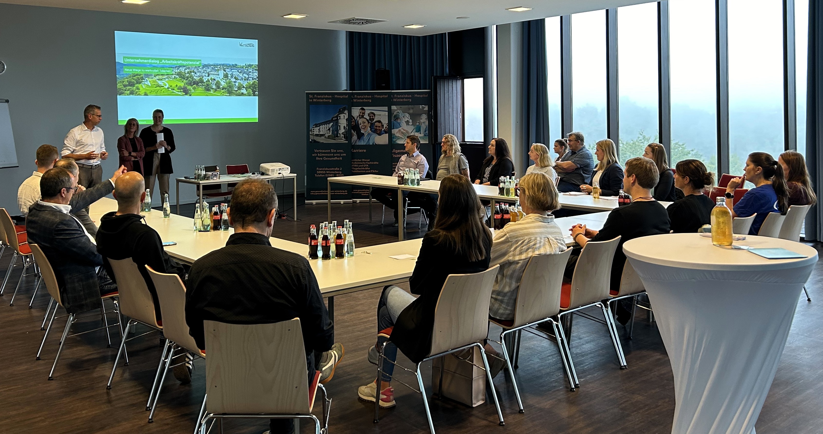 Winterberg. Wie kann das Jobcenter Unternehmen dabei unterstützen, neue Mitarbeitende zu gewinnen? Welche Möglichkeiten der Zusammenarbeit mit dem Jobcenter gibt es für die heimischen Betriebe? Und welche Vorteile bietet eine neu entwickelte Vermittlungsplattform? Um diese und andere Fragen ging es am 4. September im Panoramaraum des Oversum Winterberg beim Unternehmerdialog zum Thema Arbeitskräftepotenzial. Eingeladen hatten die Wirtschaftsförderung Winterberg zusammen mit den Jobcentern Winterberg, Hallenberg und Medebach. Die Resonanz war sehr gut, 13 Unternehmen mit einem Mix aus vielen heimischen Branchen wie Hotellerie, Gastronomie, Handwerk, Dienstleistung, Gesundheit und Industrie waren der Einladung gefolgt, um sich zu informieren und in den wichtigen Austausch miteinander zu gehen. Insbesondere die anonymen Bewerberprofile bei den Jobcentern sowie die Veröffentlichung von offenen Stellen über die neue Online-Plattform der Jobcenter standen im Mittelpunkt.