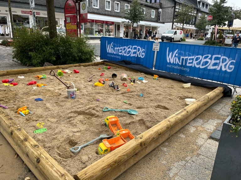 Winterberg. Das Stadtmarketing Winterberg verwandelt die ohnehin attraktive Innenstadt in den Sommerferien erneut zum Lieblingsplatz für Familien: Letzte Woche wurde der beliebte Innenstadt-Sandkasten wieder aufgebaut – in diesem Jahr in der Nähe des Winterberger Handelsmanns. Unter den schattenspendenden Bäumen können die Kleinsten nach Herzenslust buddeln, während Eltern und Begleitpersonen die entspannte Atmosphäre genießen.