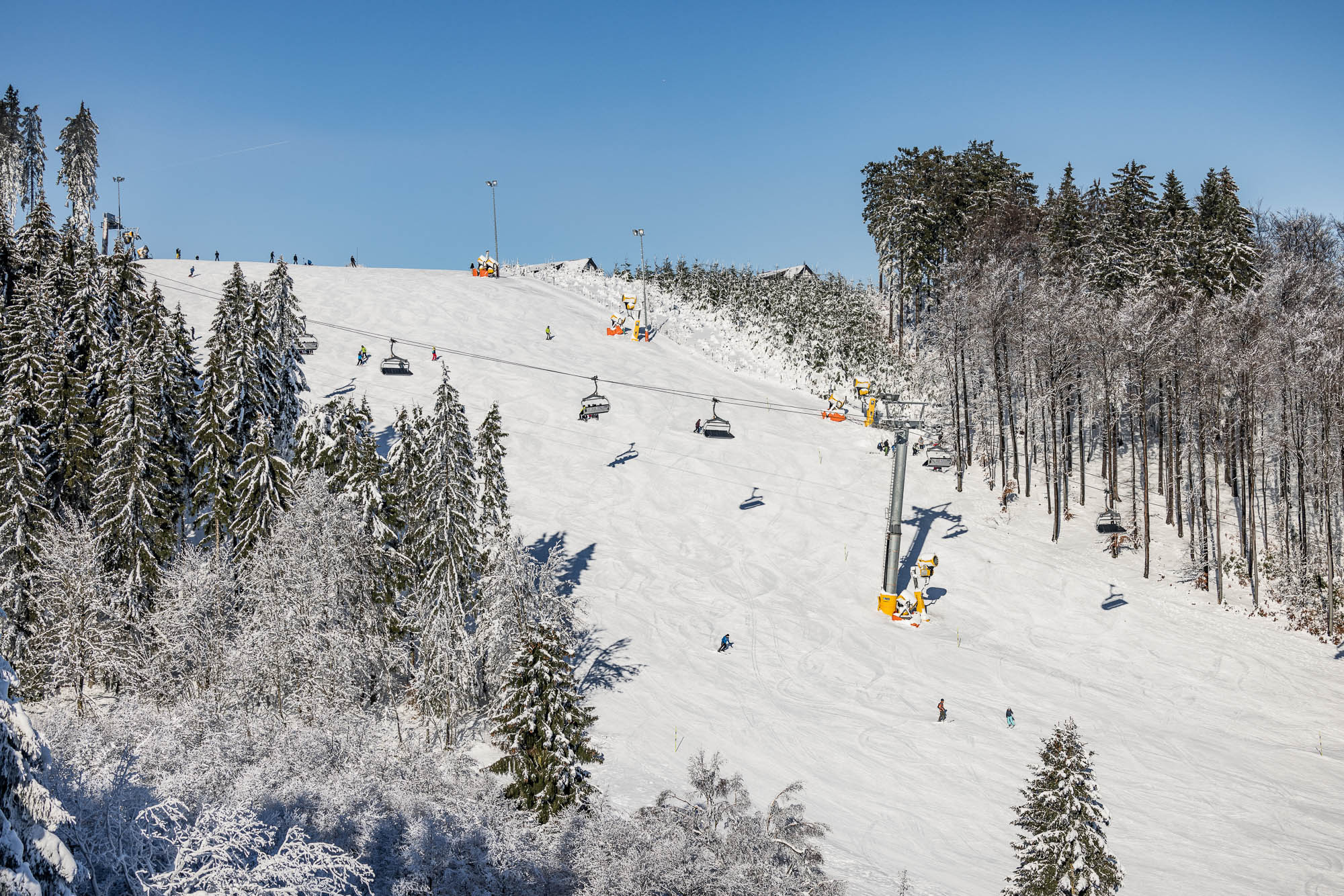 Einer der größten Vorteile des Skiliftkarussells ist die hochmoderne Beschneiungsanlage. Leistungsstarke Schneekanonen und intelligente Steuerungssysteme sorgen dafür, dass auch bei milden Wintern ausreichend Schnee liegt. So profitierst du von hoher Schneesicherheit, perfekten Pistenverhältnissen von Saisonstart bis Saisonende und gleichbleibender Qualität auf allen Hauptabfahrten. Winterberg setzt damit Maßstäbe im Wintersport in Nordrhein-Westfalen und ermöglicht dir das Ski- und Snowboardfahren mindestens von Dezember bis März.