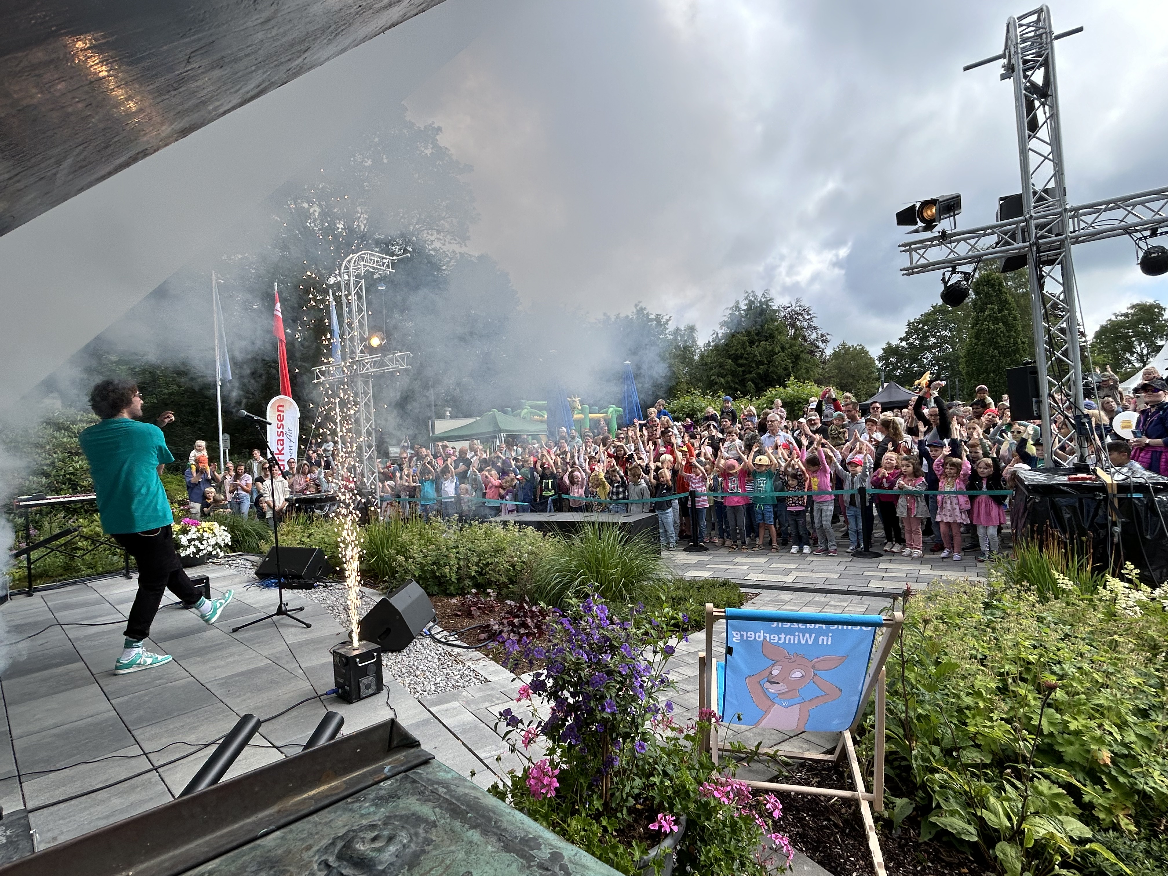 „Wir sind wieder sehr zufrieden mit dem Kinderfest. Es hat alles gepasst und auch das Wetter hat mitgespielt. herrH ist einfach ein absoluter Besucher-Magnet und lässt Kinderherzen höherschlagen. Er hat sogar auch "Mein Herz schlägt für das Sauerland" gesungen. Es war eine super Stimmung und der ganze Kurpark mitsamt Wasserbecken und Spielplatz wurde von den Kindern in Anspruch genommen“, so das zufriedene Fazit von Nicole Müller, Projektmanagerin im Stadtmarketingverein Winterberg mit seinen Dörfern. Glanzlichter waren zudem Spieleaktionen und Sackhüpfen, Rätselspaß sowie das Meet & Greet mit Waldi. Das Maskottchen der Ferienwelt Winterberg mit Hallenberg war neben herrH ein absolutes Highlight und wurde von den Kids intensiv geknuddelt. Auch Autogrammkarten und Gummibärchen hat Waldi verteilt. Der Verkaufsstand mit Kinderkleidung von Zeitlos by B & J war sehr gut frequentiert und eine Dschungel-Hüpfburg lud zum Austoben ein. Angesagt waren zudem Kinderyoga und Klicks, angeboten von Life by Ergopraxen Sauerland. Um die hungrigen Gäste kümmerte sich die Nordhang Jause mit Timo Brune.