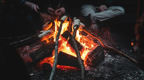 Am Ziel angekommen, machen wir es uns am Feuer gemütlich. Hier können die Kinder ( und natürlich auch die Erwachsenen) ihr eigenes Stockbrot und Marshmellows über dem Feuer grillen.