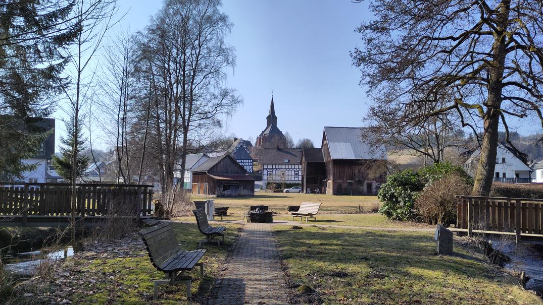 Am Sauerland-Seelenort Nuhne-Ursprung wo die Bäche Ahre und Sonneborn zusammenfließen,