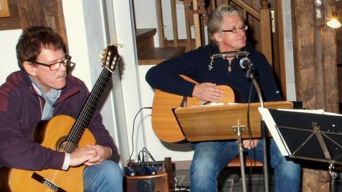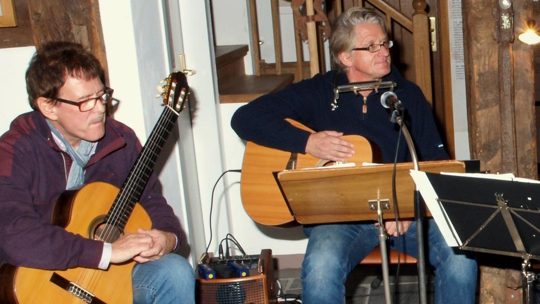 Wenn Karl-Heinz Nicolli in die Gitarre greift und Siegfried Kuttner dazu spielt und singt, wird die Scheune einmal mehr zum Spielort eines besonderen Konzertes.