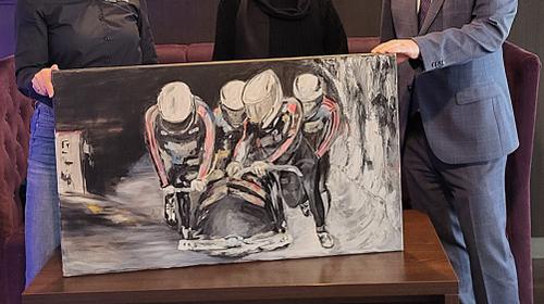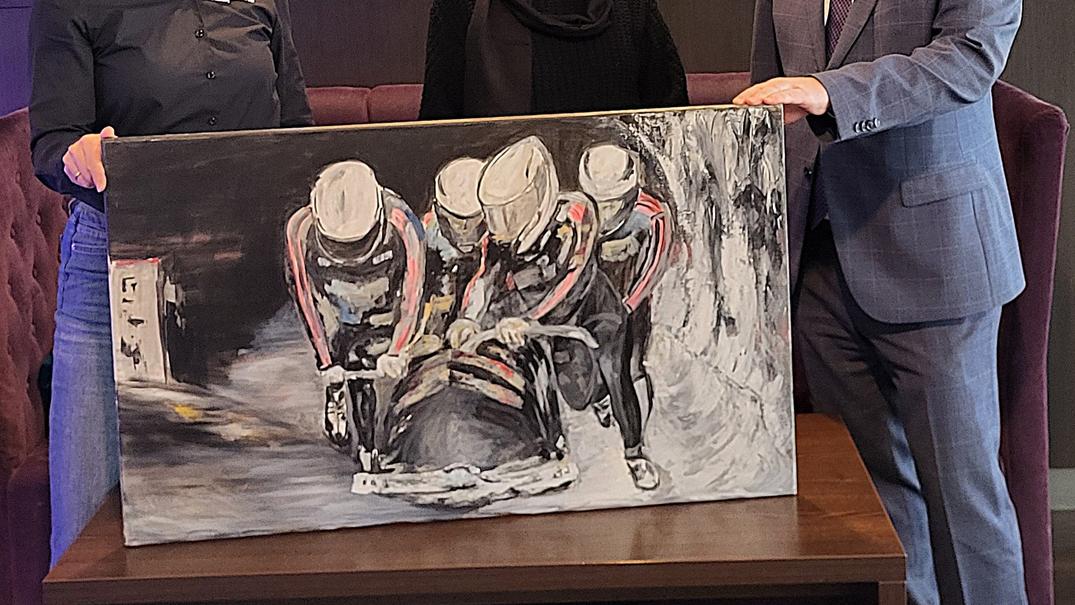 Mit der Serie "Wintersport" richtet die Künstlerin ihren Blick auf Disziplinen, die in Winterberg zu Hause sind: z.B. Skeleton, Rodeln, Bob sowie Eindrücke des Wintersports.