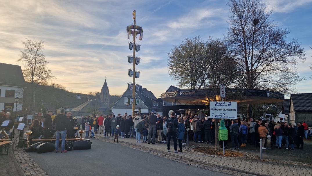 Der traditionelle Maibaum ist mit den Wappen der Siedlinghäuser Vereine geschmückt und ist damit nicht nur Zeichen des Frühlings, sondern auch ein Symbol für das Ehrenamt in der Dorfgemeinschaft.